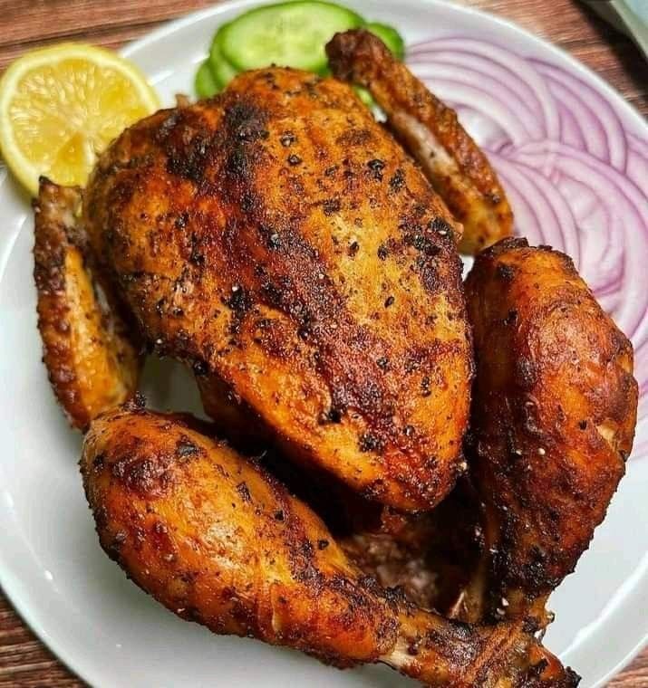 Demi-poulet grillé au feu de bois ou braisé, mariné dans des...