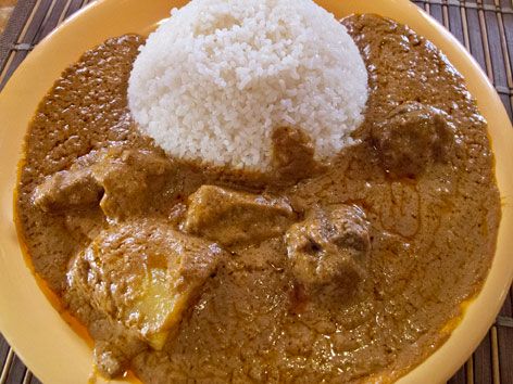 Sauce dâarachide onctueuse cuisinĂ©e avec de la viande de bĆu...
